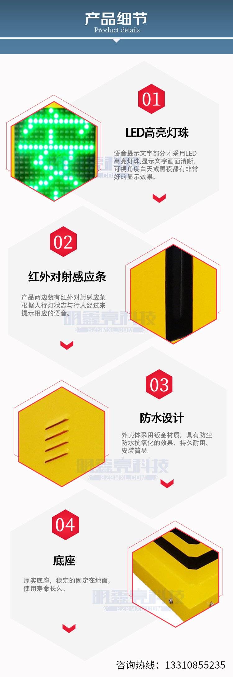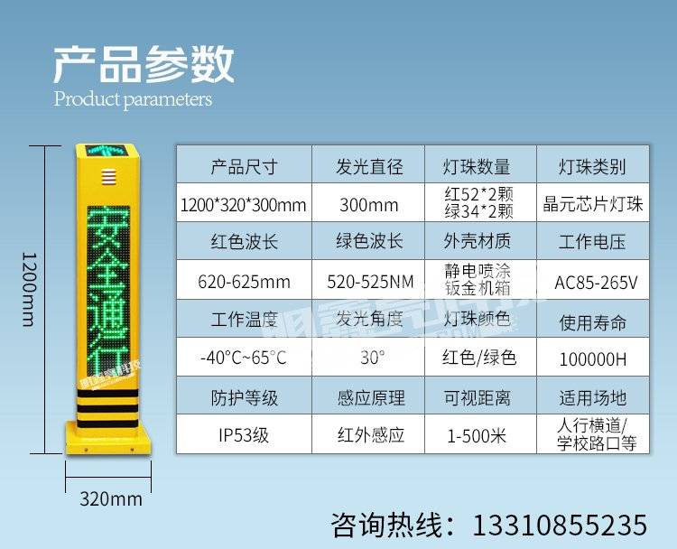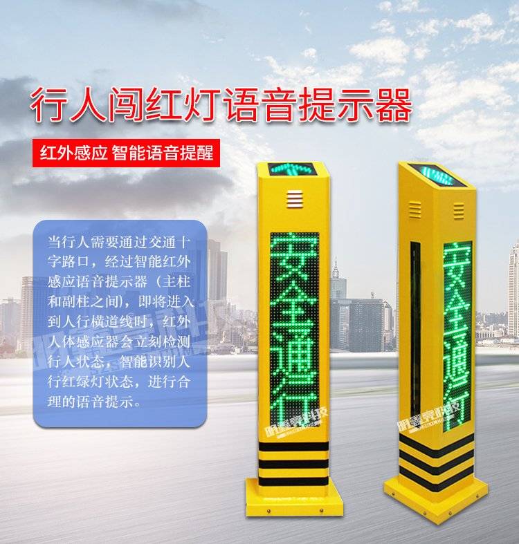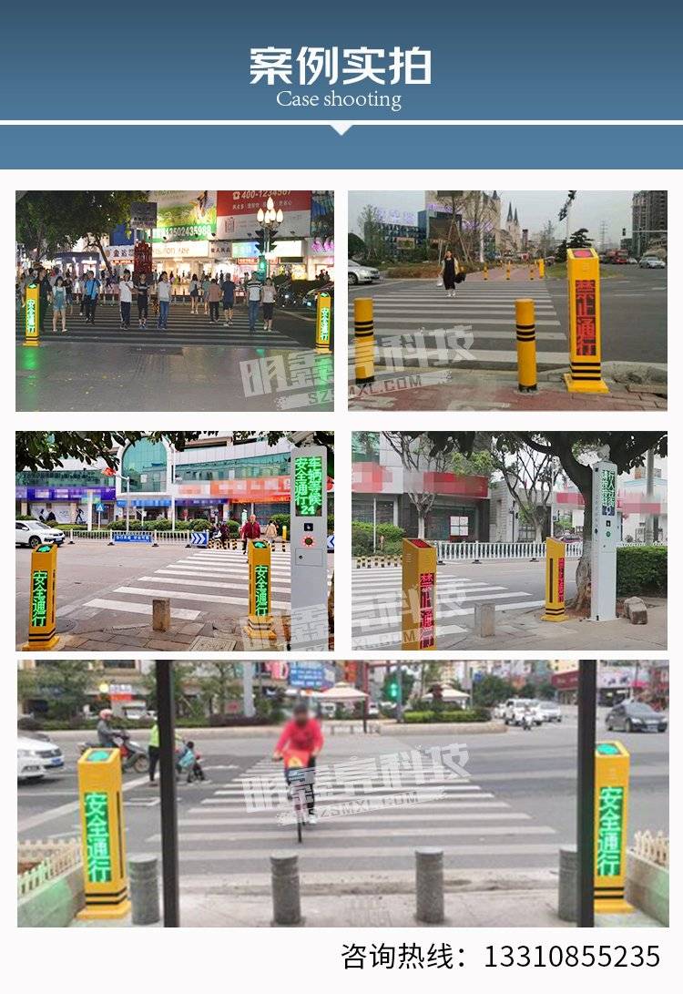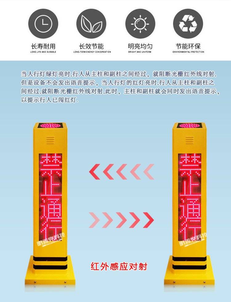 智能能斑马线警示灯 行人过街闯红灯报警桩 红外线感应语音提示柱